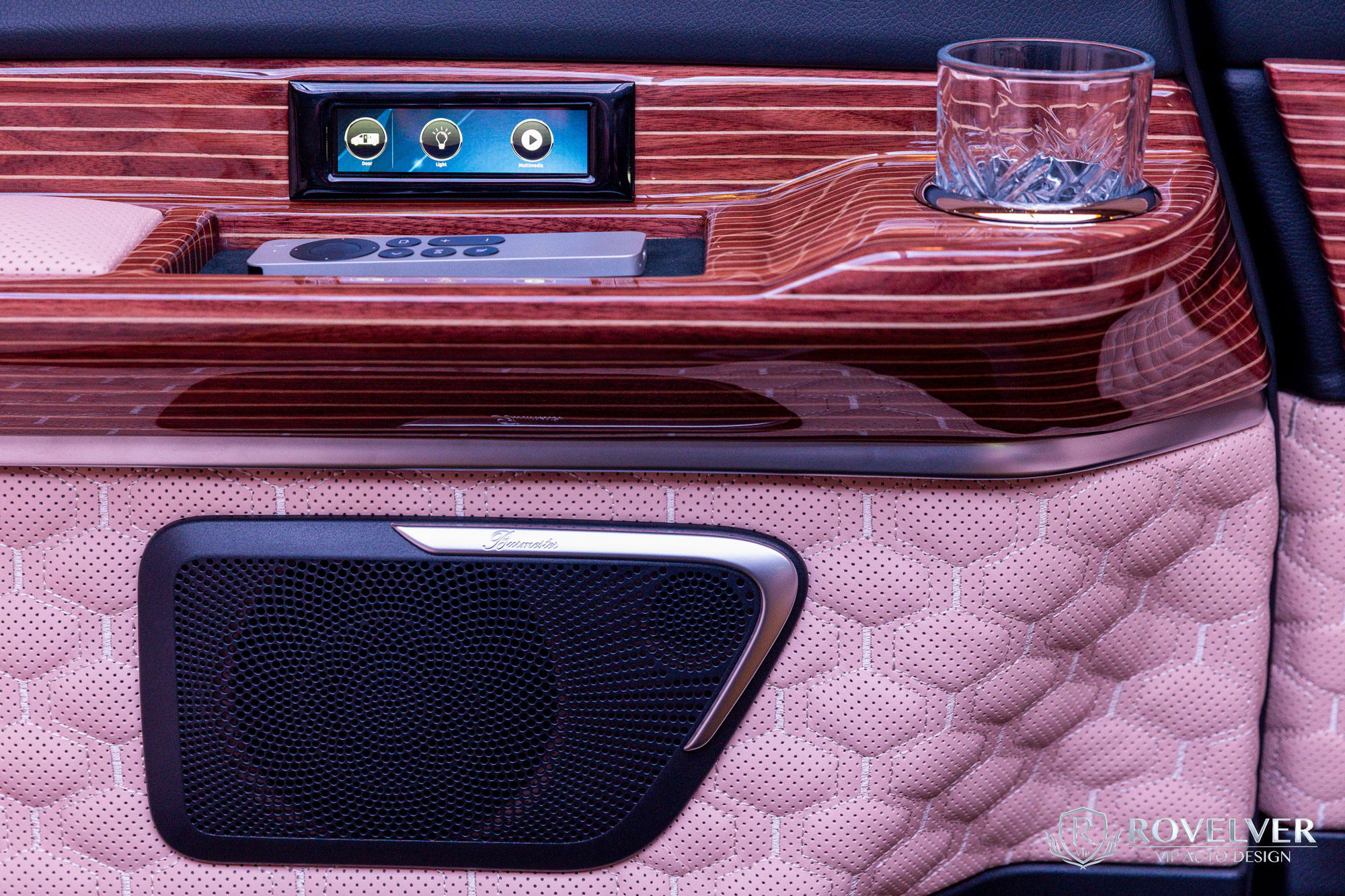 For entertainment and connectivity, the Rovelver Royal Noble is equipped with dual-sided 15.4-inch foldable LED screens, a built-in Apple TV and a mobile Wi-Fi router, allowing passengers to enjoy high-quality multimedia content wherever they are. A high-end 5.1 surround multimedia sound system transforms the cabin into a private cinema.