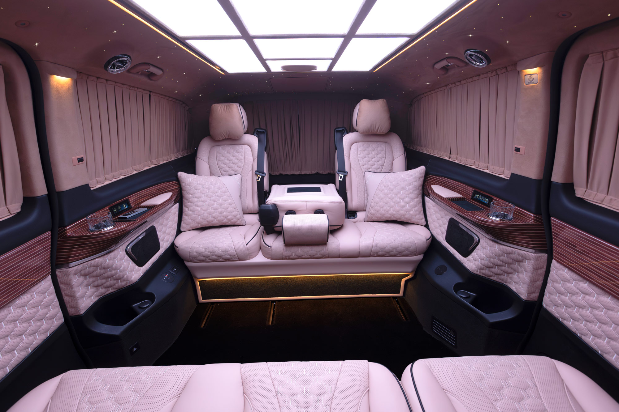 The Rovelver Royal Noble represents the ultimate expression of luxury within the Rovelver VIP Van range. Built on the Mercedes-Benz V-Class or Sprinter platform, this exclusive edition combines cutting-edge technology, refined craftsmanship and premium comfort to create a truly exceptional mobile lounge.